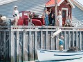 11/09 Nog even zeggen dat de KOA camping waar we zaten naar Europese normen vrij duur is maar dat de accommodatie proper en verzorgd was. Vanuit de KOA camping West Halifax vertrokken naar Peggys Cove aan de zuidkust. Een klein vissersdorpje en een héél pittoresk haventje met prachtige houten gebouwen. Ook het verhaal verbonden aan de naamgeving van de cove was blijkbaar boeiend genoeg om er een aantal boeken aan te wijden. Alleen… dat maakt het ook allemaal hééééél toeristisch… we zagen er meer autobussen binnen en buiten rijden dan er huizen staan. Om de bekende vuurtoren te zien moesten we even wachten tot de mist even optrok. Na het obligate fotootje trok de mist haar gordijn terug dicht en weg was de vuurtoren ! Het was ook net laag tij en dus maakten we van de gelegenheid gebruik om wat kreukeltje te rapen tussen de rotsige delen van het haventje. ’s avonds klaargemaakt en laten afkoelen, een lekkernij voor morgen als aperitief hapje. De weg verder gezet naar Lunenburg. Ook weer heel toeristisch maar veel minder druk omdat de grote cruiseschepen die Halifax aandoen niet de tijd maken om hun passagiers met autobussen tot daar te brengen. Lunenburg is ook een vissershaven maar is vooral aantrekkelijk omwille van de prachtig geschilderde houten huizen. Het dorpje is als één groot kleurboek en doet sterk denken aan Scandinavische vissersdorpjes met in felle kleuren geschilderde huizen. De straten in Lunenburg liggen ook op heuvels en doen direct denken aan San Francisco. Een bezoek gebracht aan het Fisheries Museum, zeer omvangrijk maar het aquarium gedeelte stelde eerder teleur. We overnachtten daar op de plaatselijke camping, veel te duur voor wat het was en met primitieve toiletten, ze durfden zelfs nog een dollar aan te rekenen voor WiFi… dan maar zonder !